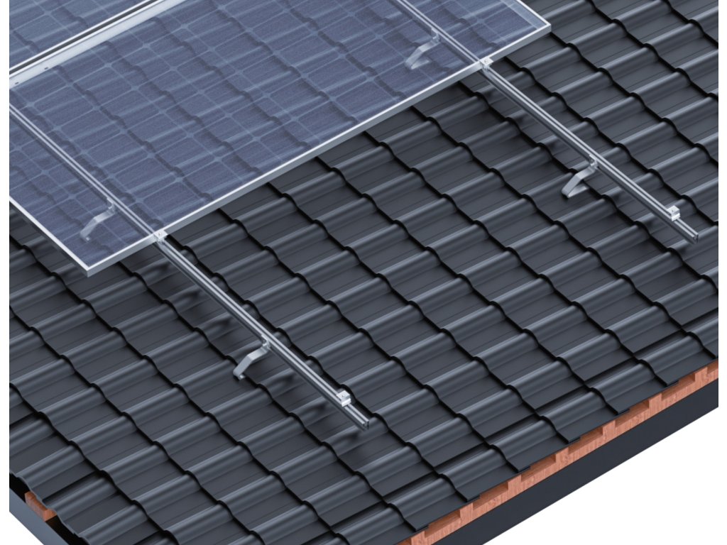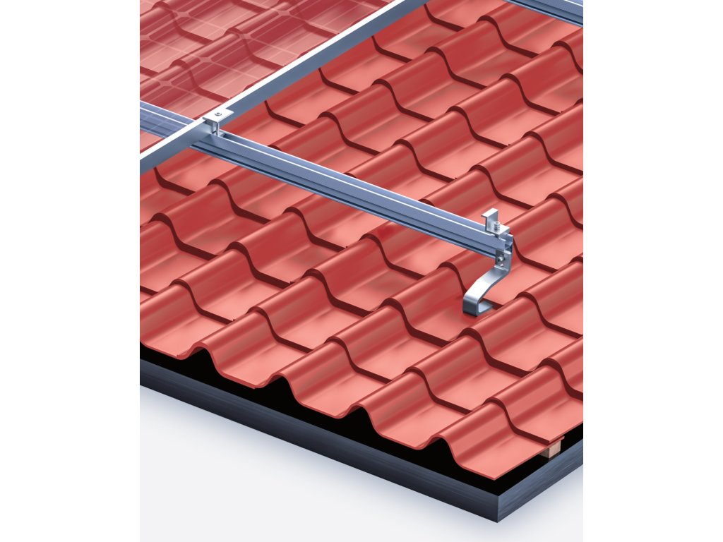 Fotovoltická konštrukcia pre montáž 10 solárnych panelovKonštrukčný set pre inštaláciu do škridľových strešných krytín, pomocou nerezových nastaviteľných hákov.